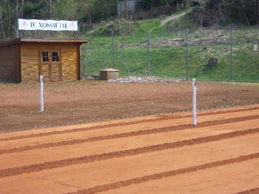 Bei der Grundsanierung wird sowohl die Ziegelmehlschicht (Tennenbelag) als auch die "Dynamische Schicht " ( Lava) komplett bis zur Tragschicht (Schotter) abgetragen.