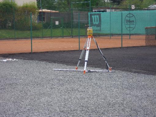 Sollten die Tennisplätze nicht mit einem Gefälle versehen worden sein, muss dieses bereit in die Tragschicht eingebaut werden